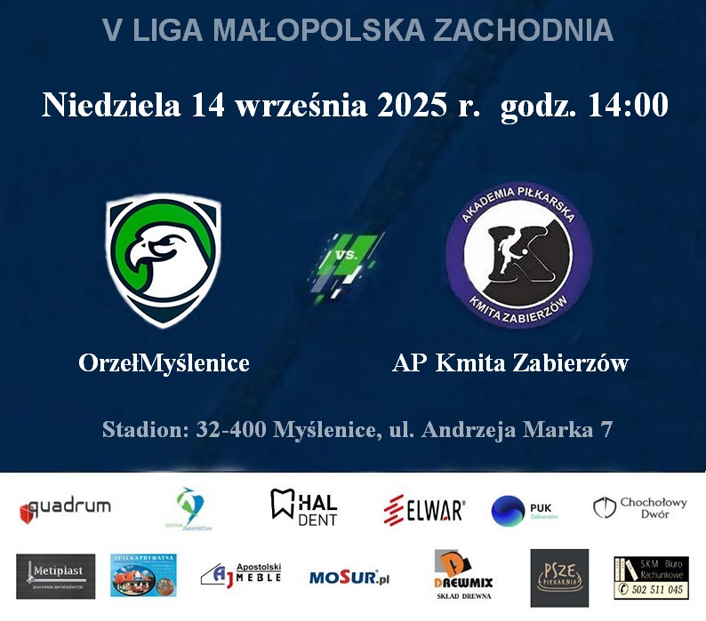 Po porażce w ostatnim meczu z Tempem Białka tym razem udamy się do Myślenic, gdzie w ramach 7 kolejki V ligi małopolskiej rozegramy spotkanie z miejscowym Orłem. W poprzedniej kolejce nasz rywal wygrał z Rabą Dobczyce 1:0 i z dorobkiem 9 punktów zajmuje 8 miejsce w tabeli. Pierwszy gwizdek sędziego w niedzielę o godzinie 14:00.