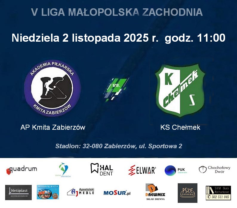 Po porażce w ostatnim spotkaniu z Jutrzenką Giebułtów w ramach 14 kolejki V ligi małopolskiej podopieczni Piotra Trzepatowskiego zmierzą się drużyną KS Chełmek. W poprzedniej kolejce nasz rywal przegrał z Rabą Dobczyce 1:2 i z dorobkiem 19 punktów zajmuje 6 miejsce w tabeli. Pierwszy gwizdek sędziego w niedzielę o godzinie 11:00.