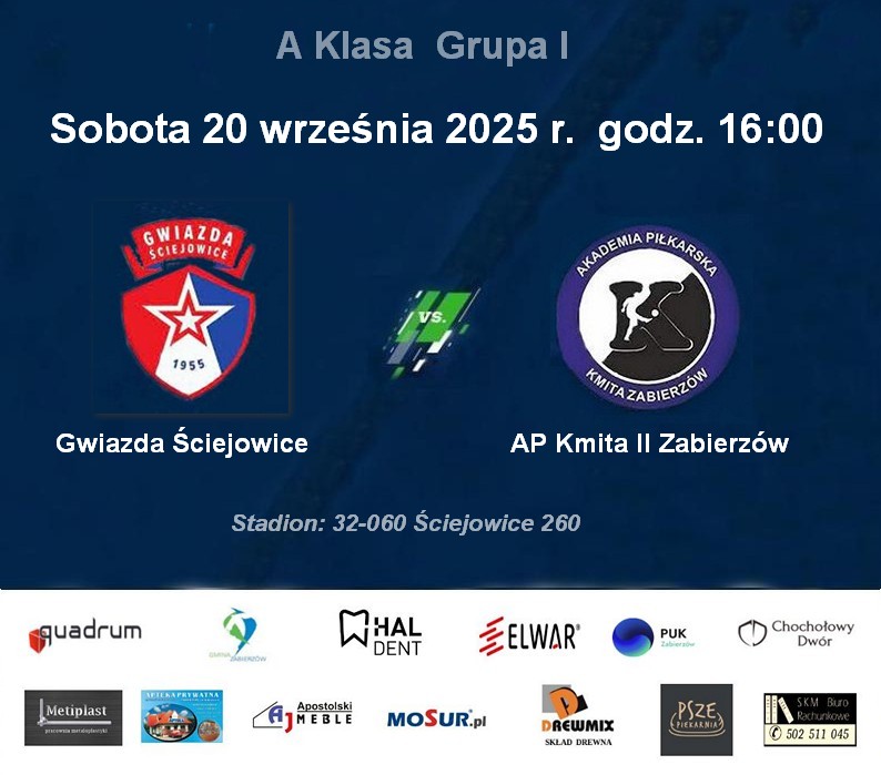 Po porażce z Iskrą Radwanowice podopiecznych Mateusza Mirka tym razem czeka wyprawa do Ściejowic, gdzie w ramach 6 kolejki krakowskiej A Klasy zagramy z miejscową Gwiazdą. Nasz przeciwnik w poprzedniej kolejce pokonał Sokół Rybna 3:1 i z dorobkiem 7 punktów zajmuje 10 miejsce tabeli. Początek spotkania w sobotę o godzinie 16:00.