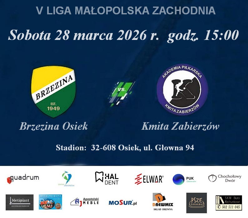 Po wygranej w ostatnim meczu z drużyną Raby Dobczyce już w najbliższą sobotę, 28 marca nasz zespół czeka pierwsze z dwóch spotkań wyjazdowych. Na stadionie w Osieku o godzinie 15:00 rozpocznie się mecz 18 kolejki V ligi małopolskiej, w którym naszym przeciwnikiem będzie zespół Brzeziny. W ostatnią sobotę nasz przeciwnik przegrał z Orłem Piaski Wielkie 0:1 i z dorobkiem 17 punktów zajmuje 14 miejsce w tabeli.